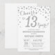 13. Geburtstag Einladung mit Silberner Glitzer Diamond Hintergrund. Silver Confetti. Kindergeburtstag. Junge oder Mädchen Teen Lady Teenage Geburtstag. Für weitere Anpassungen klicken Sie bitte auf die Schaltfläche "Anpassen" und verwenden Sie unser Designwerkzeug, um diese Vorlage zu ändern.