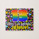 Dieses bunte und aufregende Jigsaw Puzzle-Design zum Geburtstag zeichnet sich durch eine große Zahl "13" aus, die ein buntes Regenbogenspektrum inspiriere. Es enthält auch die Meldung "HAPPY 13. BIRTHDAY", und einen personalisierten Empfängernamen. Der Hintergrund hat ein fröhliches Muster von liebevollen Herzen mit verschiedenen Größen und Farben. Ein kühnes, maßgeschneidertes Geburtstagsrätsel wie dieses könnte dazu verwendet werden, jemandes dreizehnten Geburtstag zu feiern. [~Z0000611]