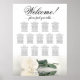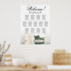 Diese elegante Hochzeitskarte umfasst 13 Tische und präsentiert ein romantisches und raffiniertes Design mit einem Single aus Elfenbein, Weiß oder Cremefarben, das auf der Seite liegt und in einem Wasserbecken reflektiert. Mit Sitzplätzen für 130 Gäste und 10 Sitzplätzen pro Tisch bietet dieses Diagramm genügend Platz für Ihre Gäste, um bequem ihre Sitzplätze zu finden. Der Titel "Willkommen! Finden Sie Ihren Tisch" ist in eleganter Schrift-Kalligraphie geschrieben, während es Platz für die Namen des Paares und das Hochzeitstag am Ende gibt. Dieses Diagramm ist eine hervorragende Möglichkeit, um Ihrem Hochzeitsempfang Schönheit, Klasse und Stil hinzuzufügen, und hilft den Gästen dabei, ihre Sitzplätze zu finden.