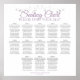 Machen Sie Ihren Hochzeitsempfang mit diesem Sitzplan schön. Als Teil unserer Lila & Gray Elegant Wedding Suite bietet es ein schlichtes und dennoch elegantes Design mit Lila-grauem Text auf weißem Hintergrund mit silberner Imitat-Folie und Blumenrahmen. Dieses Diagramm zeigt die Tabellenzuordnungen, damit Ihre Gäste den richtigen Tisch leicht finden können.