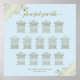 Dieses schöne 13-Tisch Hochzeitsstühle-Diagramm beinhaltet Tischbelegungen für 130 Gäste mit 10 Plätzen pro Tisch. Das Design zeichnet sich durch goldenen Text auf einem hellpulverblauen Hintergrund mit einem laky Script Kalligraphietitel aus. Die Ecken sind mit einem kühnen Imitat-Filigree mit Gardinen und Wirbel geschmückt, was es einfach und elegant macht. Stilvoll, elegant und raffiniert, um Ihren Gästen zu helfen, ihren Platz am Empfang zu finden.