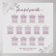 Dieses schöne 13-Tisch Hochzeitsstühle-Diagramm beinhaltet Tischbelegungen für 130 Gäste mit 10 Plätzen pro Tisch. Das Design enthält Magenta oder Cassis lila Text auf grauem Hintergrund mit einem laky Script Kalligraphietitel. Die Ecken sind mit einem albernen Filigree aus Imitat mit Gardinen und Wirbel geschmückt, was es einfach und elegant macht. Stilvoll, elegant und raffiniert, um Ihren Gästen zu helfen, ihren Platz am Empfang zu finden.