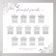 Dieses schöne 13-Tisch Hochzeitsstühle-Diagramm beinhaltet Tischbelegungen für 130 Gäste mit 10 Plätzen pro Tisch. Das Design ist mit dunkelgrauem und hellem lila oder lavenderem Text auf weißem Hintergrund mit einem laky-Script-Kalligraphietitel ausgestattet. Die Ecken sind mit einem kühnen Imitat-Folie silberne Filigree mit Gardinen und Wirbel dekoriert, die es sowohl einfach als auch elegant machen. Stilvoll, elegant und raffiniert, um Ihren Gästen zu helfen, ihren Platz am Empfang zu finden.