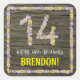14. Geburtstag: Blumennummer, Imitate Holzbild, Na Quadratischer Aufkleber