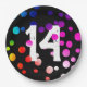 14. Geburtstag Rainbow Dots auf Black Pappteller
