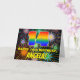 Die Vorderseite dieser lebendigen und auffälligen Geburtstagskarte zeigt eine große Zahl "14" mit einem farbenfrohen Regenbogenspektrum, inspiriert Farbverlaufsmuster. Es enthält auch die Meldung "HAPPY 14. BIRTHDAY" und einen bearbeitbaren Empfängernamen. Der Hintergrund der Vorderseite hat ein optimistisches, farbenfrohes Muster, das durch das Bersten von feierlichen Feuerwerken inspiriert wird. Die Innenseite verfügt über eine benutzerdefinierte Geburtstagsgrüßbotschaft oder könnte gelöscht und leer verlassen werden, wenn eine Nachricht von Hand geschrieben werden soll. Eine fröhliche, anpassbare Geburtstagskarte wie diese könnte eine lustige Art sein, jemandem, der seinen vierzehnten Geburtstag feiert, Geburtstagswünsche zu schicken. [~Z0000619]