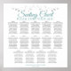Machen Sie Ihren Hochzeitsempfang mit diesem Sitzplan schön. Es zeichnet sich durch ein schlichtes und dennoch elegantes Design aus, mit aquamarinem oder türkisfarbenem & grauem Text auf weißem Hintergrund mit einem silbernen Imitat-Blumenrahmen. Dieses Diagramm zeigt Tischzuordnungen, damit Ihre Gäste den richtigen Tisch finden können.