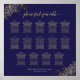 Diese schöne Hochzeitskarte beinhaltet Tischbelegungen für 140 Gäste an 14 Tischen. Das schlichte und dennoch elegante Design besticht durch goldenen Text auf marineblarem Hintergrund mit einem laky-Script-Kalligraphietitel. Die Ecken sind mit einem kühnen Imitat-Filigree mit Gardinen und Wirbel geschmückt. Stilvoll, elegant und raffiniert, um Ihren Gästen zu helfen, ihren Platz am Empfang zu finden.