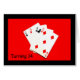 Ein Foto von vier Spielkarten - ein 2 von Spades, 3 Of Hearts, 4 Of Clubs und 5 Of Diamonds - ist das Thema meines "Turn 14 is a Big Deal!" Geburtstagskarte. Die Spielkarten, die insgesamt 14 Punkte haben, zeigen sich angenehm vor einem hellen roten Hintergrund.