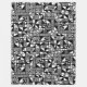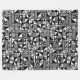 Ein handgezeichnetes und digital vektorisiertes abstraktes Musterdesign, bestehend aus einem unregelmäßigen Gitter von Quadraten und Rechtecken in verschiedenen Größen dekoriert und auf verschiedene Weise gefüllt, wodurch ein interessantes, modernes, originales, abstraktes Design entsteht.