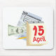 Dieses Design hat den 15. April als Steuertag. Auf diesem Design sind ein 1040 Formular, ein 100 Dollar-Schein, ein Bleistift und ein Kalender mit dem 15. April darauf, in großen roten Buchstaben gezeigt. Dieses Mauspad kann auf jedem Schreibtisch verwendet werden. Ein großartiges Geschenk für Ihren Buchhalter.