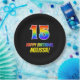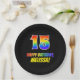 Dieses farbenfrohe, fröhliche und lustige Geburtstags-Thema Papierplatten-Design zeigt eine große Zahl "15" und die Meldung "HAPPY BIRTHDAY", beide mit einem inspirierten Regenbogenspektrum-Farbverlauf, zusammen mit einem kühnen gelben, anpassbaren Namen. Es hat einen schwarzen Hintergrund. Teller mit individualisierbaren Geburtstagsthemen wie diese können bei Jemandem auf der 15. Geburtstagsfeier verwendet werden. [~Z0000488]