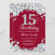 15. Geburtstag Burgundy Red und Silver Diamond Einladung