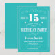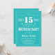 15. Geburtstag Einladung Aquamarine und weiße Typografie. Aquamariner und weißer Hintergrund.Kindergeburtstag. Männer oder Frauen zum Geburtstag. Kinder Junge oder Mädchen Lady Teenage Teenage Bday Einladen. 13. 15. 16. 18. 20. 21. 30. 40. 50. 60. 70. 80. 90. 100. Jedes Alter.