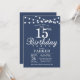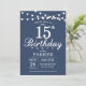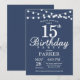 15. Geburtstag Einladung mit String Lights. Blue Background. Kindergeburtstag. Junge oder Girl Lady Elegant am Tag einladen. 13. 15. 16. 18. 20. 21. 30. 40. 50. 60. 70. 80. 90. 100. Jedes Alter. Für weitere Anpassungen klicken Sie bitte auf die Schaltfläche "Anpassen" und verwenden Sie unser Designwerkzeug, um diese Vorlage zu ändern.