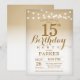 15. Geburtstag Einladung mit Gold String Lights. Gold zum Geburtstag. Erwachsener zum Geburtstag. Männer oder Frauen laden ein. 13. 15. 16. 18. 20. 21. 30. 40. 50. 60. 70. 80. 90. 100. Jedes Alter. Für weitere Anpassungen klicken Sie bitte auf die Schaltfläche "Anpassen" und verwenden Sie unser Designwerkzeug, um diese Vorlage zu ändern.