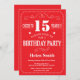 15. Geburtstag Einladung Rot und Weiß Typografie. Roter und weißer Hintergrund. Kindergeburtstag. Männer oder Frauen zum Geburtstag. Kinder Junge oder Mädchen Lady Teen Teenage Bday einladen. 13. 15. 16. 18. 20. 21. 30. 40. 50. 60. 70. 80. 90. Jedes Alter. Für weitere Anpassungen klicken Sie bitte auf die Schaltfläche "Anpassen" und verwenden Sie unser Designwerkzeug, um diese Vorlage zu ändern.