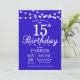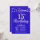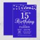 15. Geburtstag Einladung mit String Lights. Royal Blue Background. Kindergeburtstag. Junge oder Girl Bday einladen. 13. 15. 16. 18. 20. 21. 30. 40. 50. 60. 70. 80. 90. 100. Jedes Alter. Für weitere Anpassungen klicken Sie bitte auf die Schaltfläche "Anpassen" und verwenden Sie unser Designwerkzeug, um diese Vorlage zu ändern.