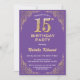 15. Geburtstag Lila und Gold Glitzer Frame Einladung