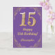 15. Geburtstag Lila und Gold Glitzer Frame Karte