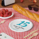 15. Geburtstag quiencenera fügen Datum Jahr blauen Pappteller