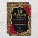 15. Geburtstag - Rote Rosen Leopard Print Einladung