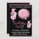 15. Geburtstagsparty Einladung mit Ballons. Farbschema für Rosa und Schwarz.