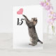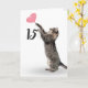 Graue Tabbykatze mit rosa Herzballon zum 15. Geburtstag auf weißem Hintergrund. Hintergrundfarbe kann geändert werden