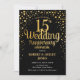 15. Hochzeit Jubiläum Einladung Elegantes Design in Schwarz mit Imitaten goldenen Drehbuch Schriftart und Konfetti. Melde mich, wenn du ein benutzerdefiniertes Jahr brauchst.