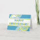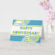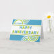 Das ist eine helle, auffällige, 15-jährige Jubiläumskarte für Angestellte in Blau, Grün und Weiß. Das Design enthält den zentral platzierten Text 'HAPPY ANNIVERSARY' in einem überlagerten Effekt-Schriftart. Oben und unterhalb dieses Textes sind kreisförmige, dekorative Elemente, die farblich dem Text entsprechen. Die Anzahl der Jahre wird im unteren Teil der beiden Rundformen über dem zentralen Text geschrieben. BITTE BEACHTEN SIE: Der 3D-Effekt wird im Kunstwerk digital simuliert, bei der Herstellung dieser Karte werden keine echten 3D-Elemente verwendet. Die bedruckte Karte ist komplett flach. Design von Natalie Kinnear