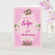 Eine 15-jährige Jubiläumskarte für Ihre Ehefrau. Eine elegante Tracery in rosa Sets der vier rosa Rosen. Der Hintergrund ist ein blassrosa Muster von Blume. Eine schöne Karte, die Sie Ihrer Ehefrau zu Ihrem Hochzeitstag schicken können.