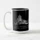 Eine hundertjährige Tasse für St. Luke's der Berge, La Crescenta-English. Ein Sake symbolisiert "Liebe, Heiligtum und Gemeinschaft" mit der inspiriert Poesie von Frau J.D.H. Browne. Schwarzer Hintergrund mit White Line Darstellung der Stone Church Architektur von 1924 inspiriert von Seymore Thomas, mit dem Chimes Bell Tower.