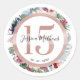 Schöne Quinceañera Gunst oder Dekor Aufkleber mit Rose Gold Nummer 15, pastellfarbene Blumendetails und Rose Gold Hintergrund. Möglichkeit zum Hinzufügen von Namen und Datum oder kurzer Nachricht. Zwei Größenoptionen stehen zur Verfügung. Ideal für Vorlieben oder als Teil Ihrer Veranstaltungsdekoration (z.B. Kleben Sie sie mit Zahnstocher oder Spieß dazwischen für Kuchen/Wüstenoberflächen/Zenterstücktopfer..) Blume in einer ansprechenden Mischung aus Rosa, Beere, Magenta, Bordeaux, Champagner, Blautönen und Marineblau. Moderne handgeschriebene Kalligraphie. Teil unserer "Pastel Floral Collection".