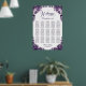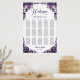 Helfen Sie Ihren Gästen mit dieser lila Blumenkarte, ihren Tisch zu finden. Es ist für eine Hochzeit mit 15 Tischen und bis zu 150 Personen geeignet.