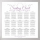 Machen Sie Ihren Hochzeitsempfang mit diesem Sitzplan schön. Es zeichnet sich durch ein schlichtes und dennoch elegantes Design aus, mit lila und grauem Lavendel auf weißem Hintergrund mit einem silbernen Imitat-Folie mit Blumenrahmen. Dieses Diagramm zeigt die Tabellenzuordnungen, damit Ihre Gäste den richtigen Tisch leicht finden können.