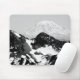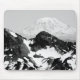 Schwarz-Weiß-Foto des Berges Rainier mit einer robusten Bergkette im Vordergrund. Image Copyright ©2023 Kimberly J Tilley. zazzle.com/store/developingnature