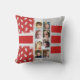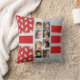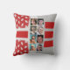 16 Foto doppelseitige Collage werfen Kissen / Kissen hinzufügen 8 Fotos auf der Vorderseite und weitere 8 auf der Rückseite. Grau und rot mit Blätter und Streifen.