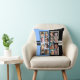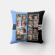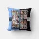Personalisieren Sie dieses Kissen mit Ihren eigenen Fotos. Dieses Kissen ist beidseitig mit den gleichen 16 Fotos vorne und hinten. In Schwarz und Blau mit Streifen.