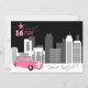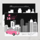 © Sozialite Designs. Ein lustiges pinkfarbenes Limo in der Stadt süße 16 Geburtstagsfeier Einladung. Personalisieren Sie Ihre Party-Informationen.