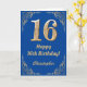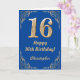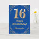 16. Geburtstag Blau und Gold Glitzer Rahmen Karte