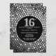16. Geburtstag Einladung Black and Silver Glitzer