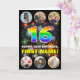 Die Vorderseite dieses fröhlichen und optimistischen Geburtstagskarten-Designs zeigt eine große Zahl "16" mit einem farbenprächtigen Regenbogenspektrum, inspiriert Farbverlaufsmuster, zusammen mit der Meldung "HAPPY 16. BIRTHDAY" und einem anpassbaren Namen, auf einem Muster inspiriert durch das Platzen farbiger Feuerwerke. Oben und unten auf der Vorderseite sind Bilder, die individuell angepasst werden können, vielleicht mit Fotos der Familie und Freunde des Empfängers. Die Innenseite hat eine personalisierte Geburtstagsgrüßbotschaft, oder könnte gelöscht und leer verlassen werden, wenn eine Nachricht von Hand geschrieben werden soll. Eine positive, bearbeitbare Geburtstagskarte wie diese könnte eine lustige Art sein, jemandem, der seinen sechzehnten Geburtstag feiert, Geburtstagswünsche zu geben. (Fotografie © Storytree Studios, Stanford, CA.) [~Z000660]