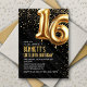 16. Geburtstag Gold Black Einladung