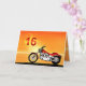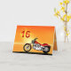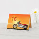 Ein Motorrad, ähnlich wie ein Harley, das am Meer stehend ist und einen herrlichen orangefarbenen Sonnenuntergang bietet. Eine tolle Karte für alle, die Fahrrad und Motorrad mögen. Erleben Sie das ganze Kartenangebot für Beziehungen und Jahrgänge in meinem Geschäft. Alle Kunstwerke, Copyright Norma Cornes