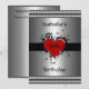 Einladung 16. 16 . Geburtstag Geburtstag Rotes Herz mit schwarzer Flora und Sterne auf Silber mit schwarzem Schnitt. Passen Sie Ihre persönlichen Daten an.