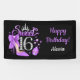 Bearbeitbarer Name. Sweet 16. Geburtstag Design. 16. Geburtstagsdesign für Mädchen, junge Damen, Jugendliche. Mit geDRUCKTER Tiara/Kronen, High Heel Schuh, Kuchen und Nummer 16 Design. Lila auf schwarz. Dieses glamouröse Design ist ein perfektes Geschenk für 16 Jahre alte Freunde, Tochter, Schwester, junge Dame. Die tolle Idee für die 16. Geburtstagsfeier.