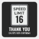 16. Geburtstag Tempolimit Schild Schwarz-Weiß Quadratischer Aufkleber