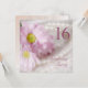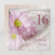 Ein wunderschönes zartes Bild von Gänseblüten in sanften rosa Tönen. Im Hintergrund ist eine Perlenkette. Der ganze Effekt ist weich und altmodisch. Eine schöne 16. Geburtstagsfeier. Ändern Sie den Rücken in Ihre eigenen Party-Details