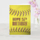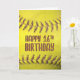 Extreme Schließung eines gelben Softballs mit rotbrauner Naht zum 16. Geburtstag.