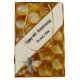 Wax ist das traditionelle Geschenk für einen sechzehnten Hochzeitstag. Diese Geschenktüte ist mit einem Bild von Honigwabenkomb und einem Banner mit bearbeitbarem Text dekoriert. Ideal für Paare zum 16. Geburtstag und ideal für die Zusammenarbeit mit einer passenden Karte.